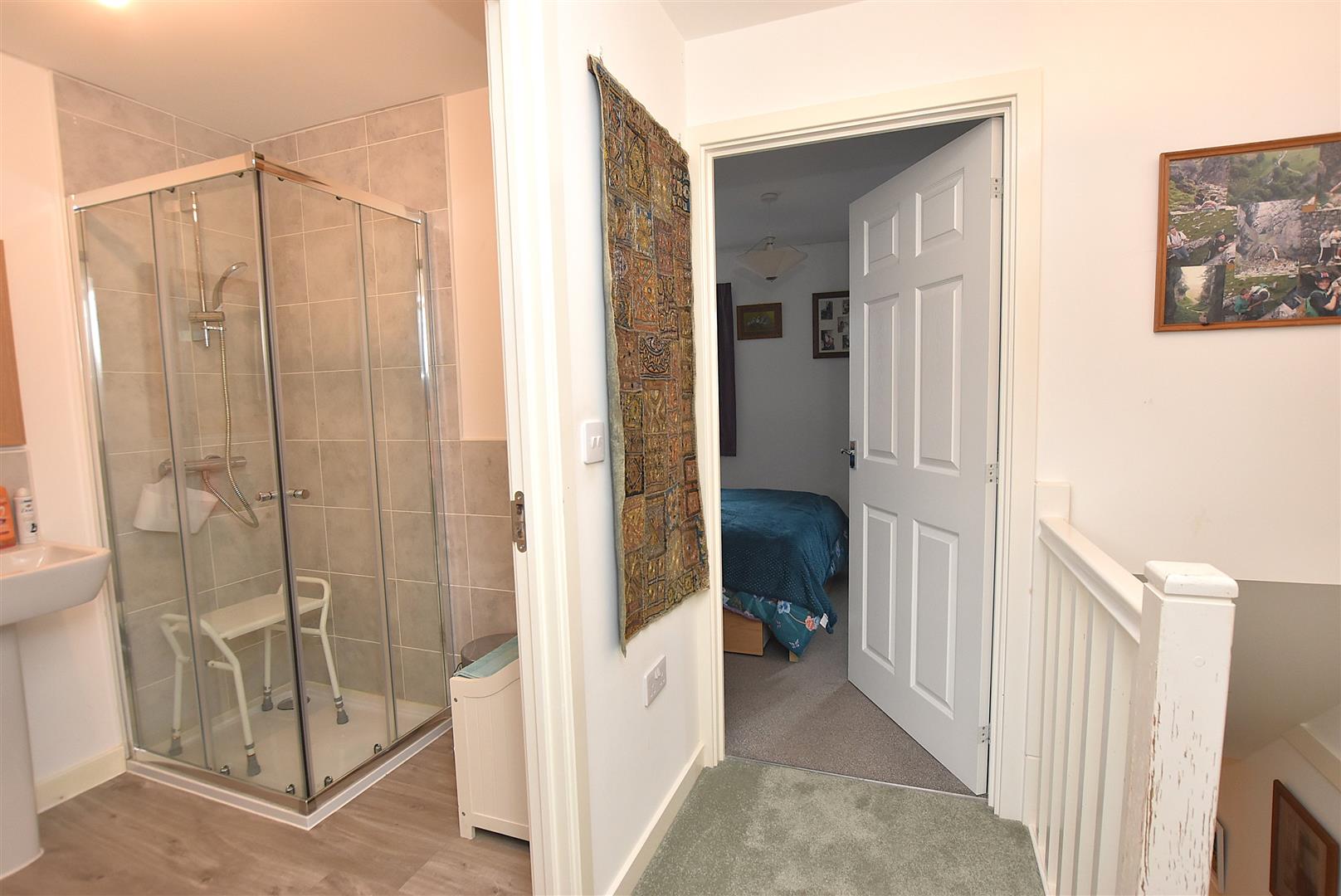 Upstairs, there are two double bedrooms and a shower room. The shower room used to be a bathroom but has been adapted to suit the needs of the owner.