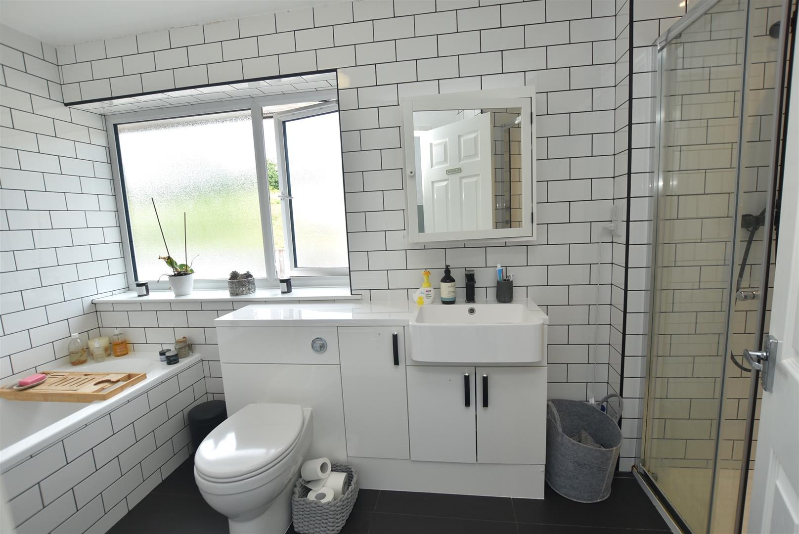 A spacious modern bathroom/shower room fitted with a four piece suite.