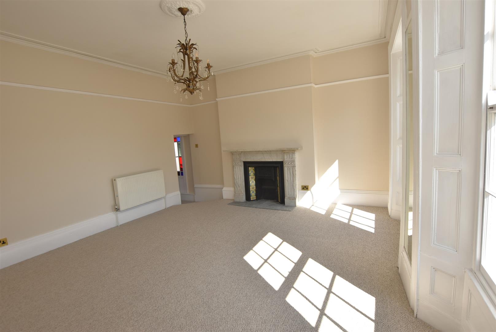 This beautifully modernised apartment boasts two spacious double bedrooms and striking living accommodation, all enhanced by elegant high ceilings that reflect the charm of its period. The property has undergone a meticulous renovation, blending contemporary style with original features, ensuring a warm and inviting ambiance throughout. Upon entering, you are greeted by a private hall that leads to a utility room, spacious bath/shower room, stylish kitchen, and the magnificent lounge/diner. The kitchen is a chef's delight, equipped with 'slow close' cupboards, integrated appliances, and ample space for a large American-sized fridge/freezer, a wide alcove providing the perfect location with room to spare. A striking stained-glass window illuminates the passageway leading to the lounge/diner, which features a stunning Wren marble fireplace and two tall sash windows that offer south-facing views down to the river. Moreover, this well-appointed property benefits from the home comforts of gas central heating linked to 'Hive' ensuring warmth and energy efficiency throughout the seasons, controllable from your smart phone.