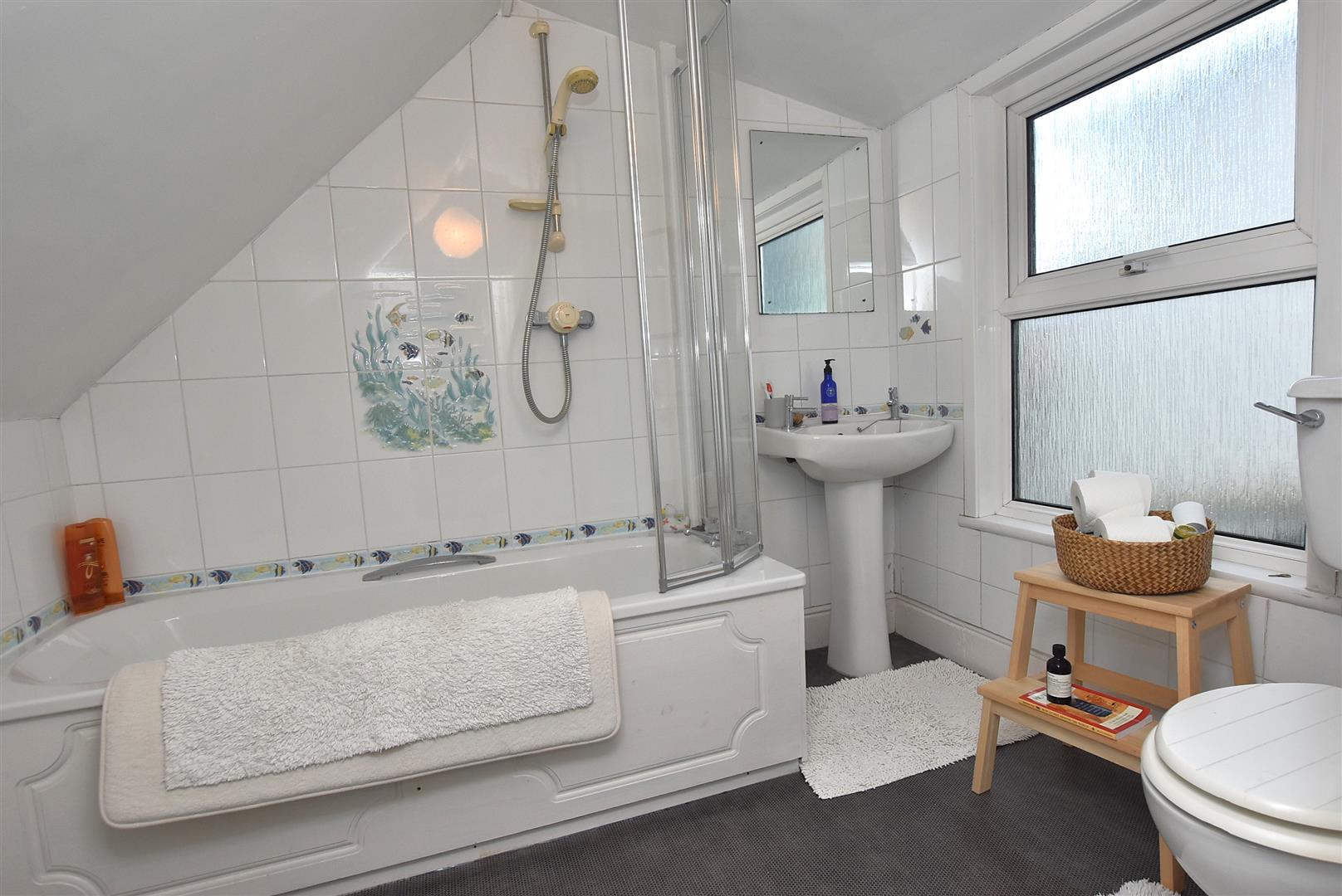 The first floor is home to the main bathroom and two bedrooms, while the striking master bedroom on the top floor benefits from a generous en-suite shower room, ensuring privacy and convenience. The property is equipped with modern comforts, including gas central heating and uPVC double glazing, providing warmth and energy efficiency throughout the year.