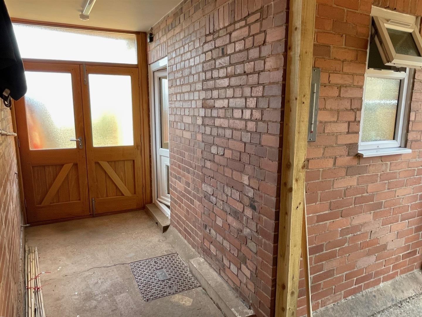 Substantial timber double doors. Power and light connected. uPVC double glazed window.