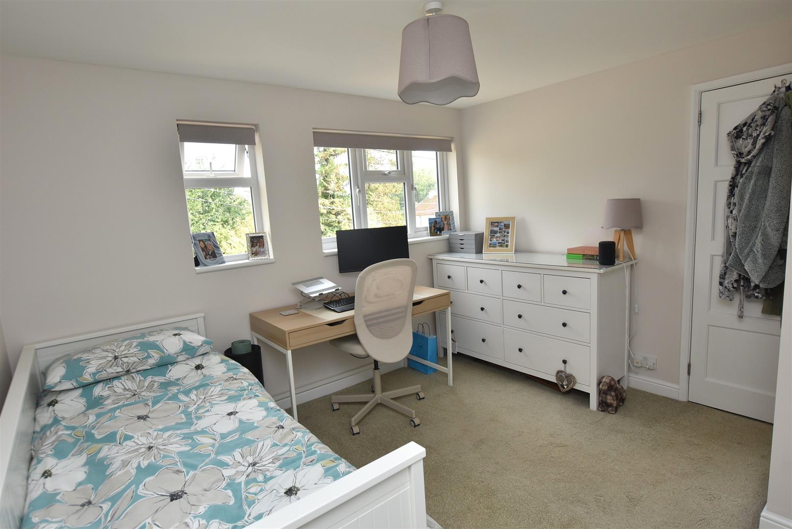 Outside, there is a well-maintained lawned garden at the front, complemented by a long driveway that accommodates parking for up to three vehicles, along with access to a single garage. The rear garden is a true highlight, having been beautifully landscaped to create a serene outdoor space. Fully enclosed and newly fenced, it ensures a haven for children and pets alike, while its sunny orientation makes it the perfect environment for alfresco dining and entertaining from mid-morning to early evening.