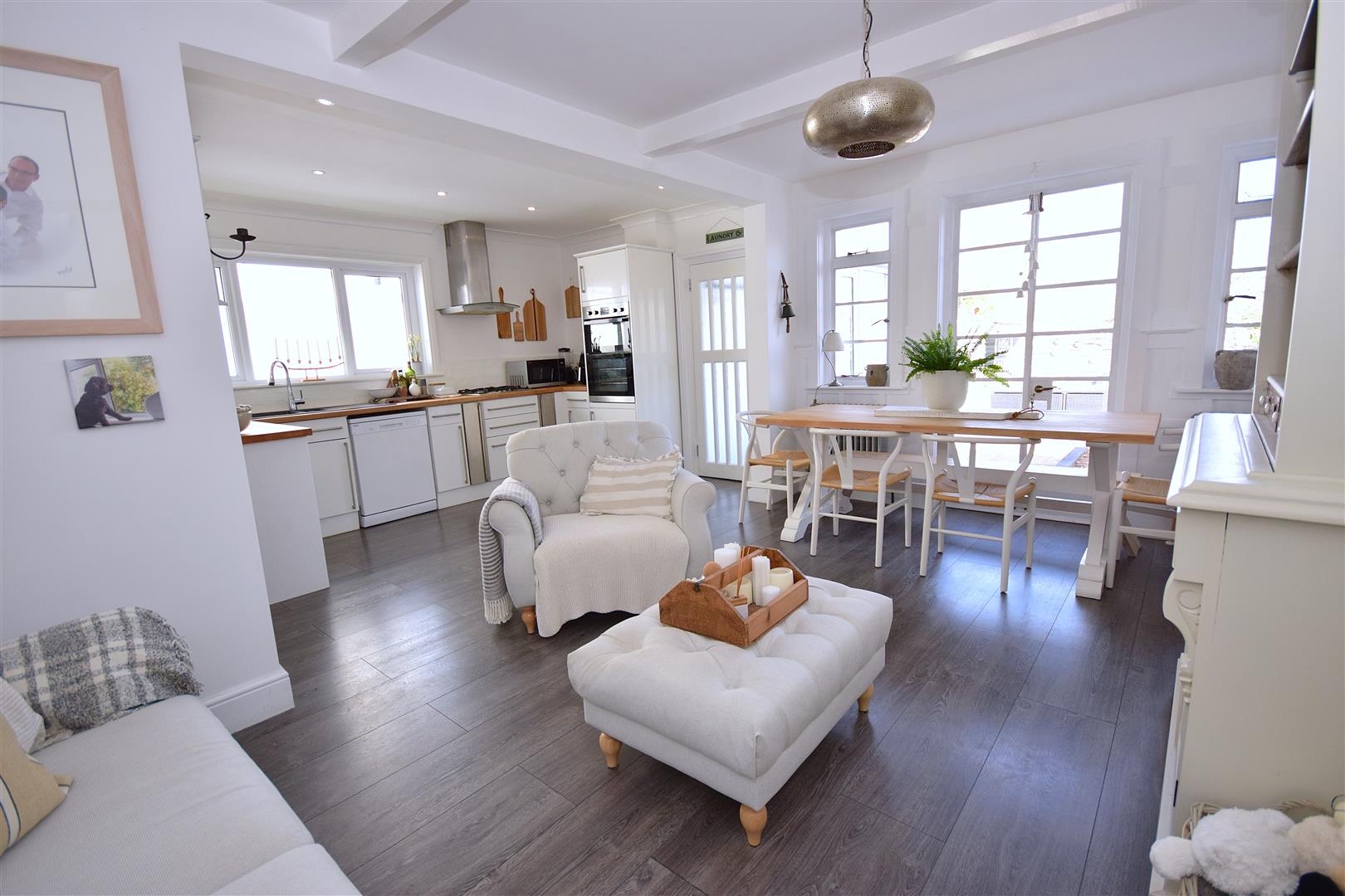 The accommodation is light and airy, having been thoughtfully modernised to meet the needs of contemporary family living. The heart of the home is undoubtedly the stunning open-plan kitchen/dining room, which has been designed to be both functional and inviting, offering ample space for a sofa; ideal for social gatherings with friends and family. Additionally, the property features a downstairs utility/cloakroom WC, enhancing practicality for everyday life.