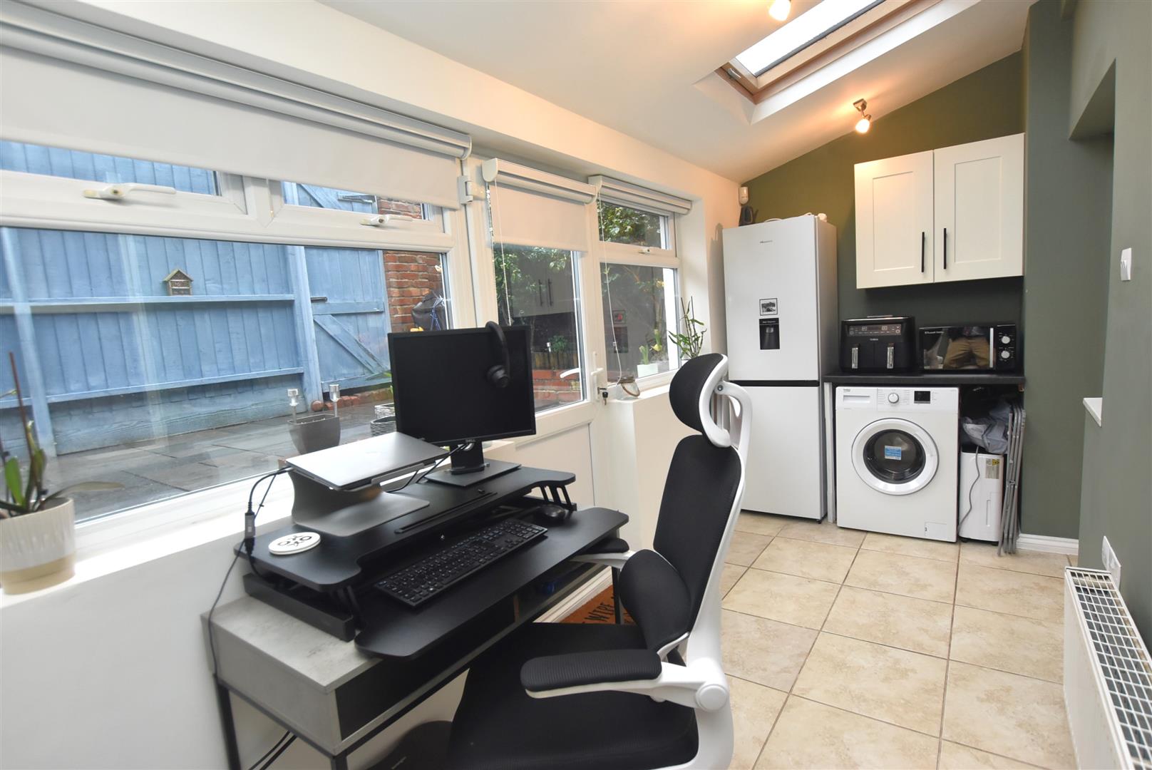 The ground floor consists of an entrance vestibule and hall, front lounge, striking open-plan kitchen/diner and a full width study/utility opening onto the rear garden. Upstairs, there are two double bedrooms and a spacious bathroom. The property is offered in excellent condition throughout and comes with gas central heating and uPVC double glazing, ensuring warmth and energy efficiency throughout the year.