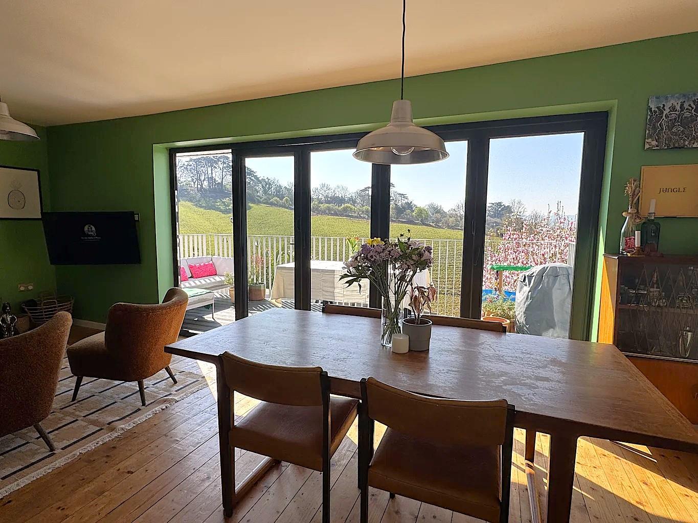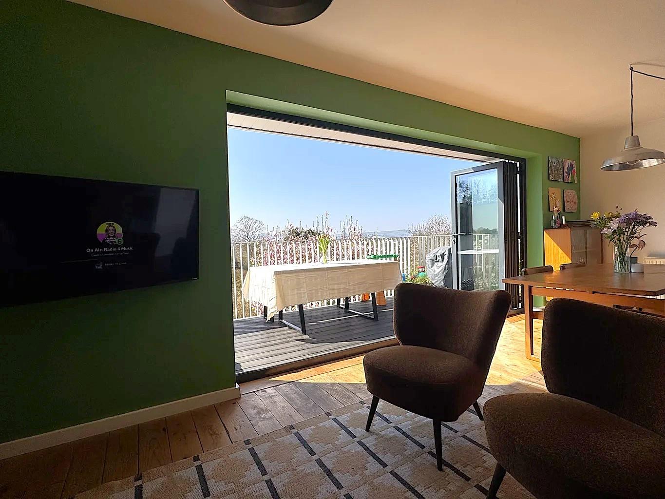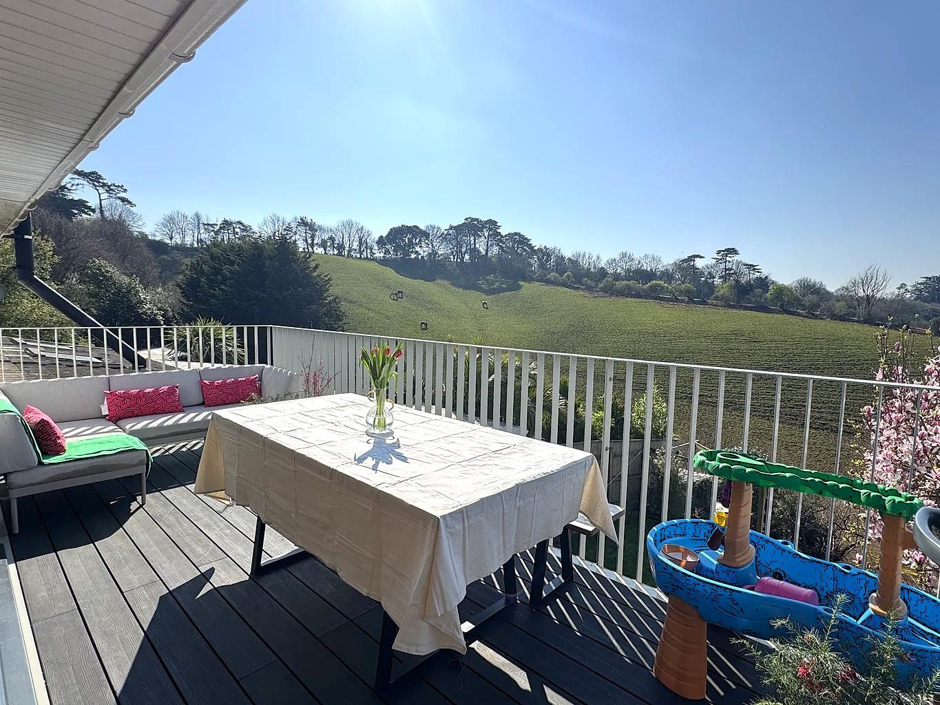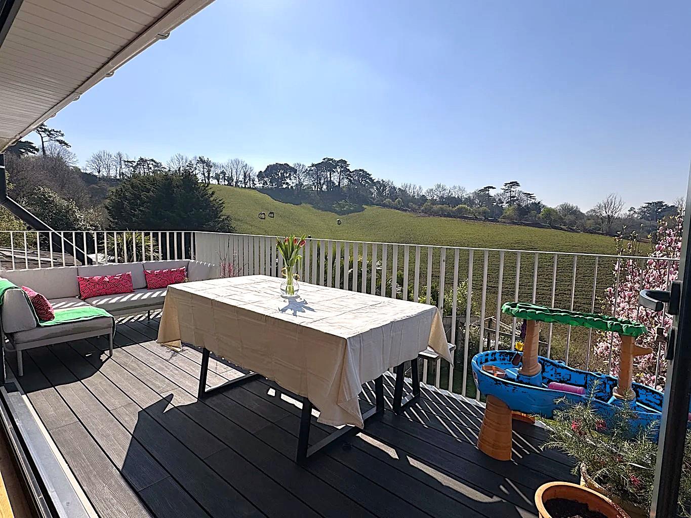 As you set foot inside the house at ground floor level, the open entrance hall gives way to a sizeable utility room/cloakroom WC and the first bedroom adding to the versatility of the accommodation. The hall then opens through to the spacious lounge/diner spanning the full width of the house and offering spectacular views across Ludwell Valley Park to distant hills. This inviting living area seamlessly connects to a recently modernised kitchen, creating an ideal space for family gatherings and entertaining. One of the standout features of this home is the expansive south-west facing balcony, perfect for alfresco dining and soaking in the stunning vistas.